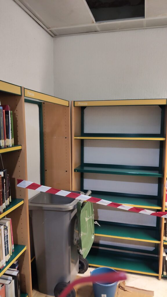 Desde el PSOE han denunciado estos hechos, indicando: “no es normal que cada vez que llueve nuestros vecinos tengan que extremar las precauciones dentro de los centros de mayores, bibliotecas o centros culturales, sorteando cartones por los suelos mojados y cubos de agua”.